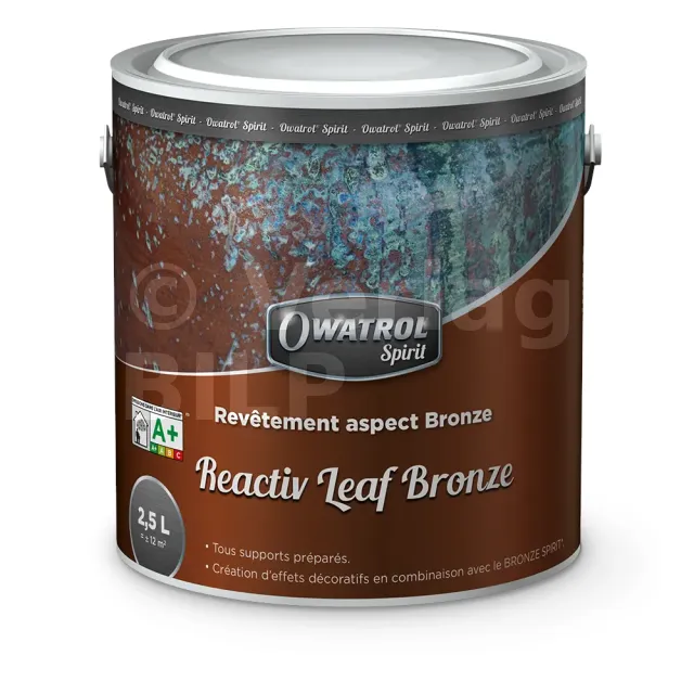 - Tragen Sie eine Schicht REACTIV LEAF BRONZE mit einem Pinsel oder einer Rolle (mittleres Haar) auf, um die solide, trockene und saubere Oberfläche zu bedecken, die ordnungsgemäß vorbereitet wurde (siehe oben).