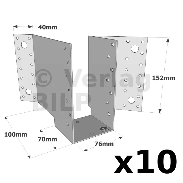 Diese Holzbalkenschuhe wurden entwickelt, um den vielen Fällen gerecht zu werden, die im Dachstuhl auftreten, wenn ein 45°-Winkel erforderlich ist. Sie werden in der Regel für horizontale Anwendungen verwendet, können aber auch für andere Zwecke angepasst werden.