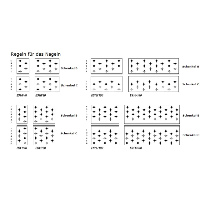 | Abmessungen [mm] | Bohrungen [mm] | Befestigungen | Charakteristische Tragfähigkeiten - 2 Winkelverbinder pro Montage - Nadelholz C24 [kN] | ||||||||||
