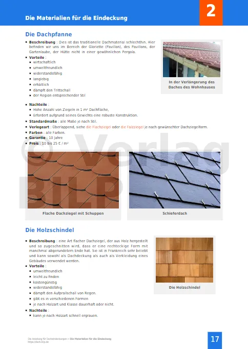 Die Anleitung zur Auswahl und Verlegung von Dacheindeckungen, zum HERUNTERLADEN