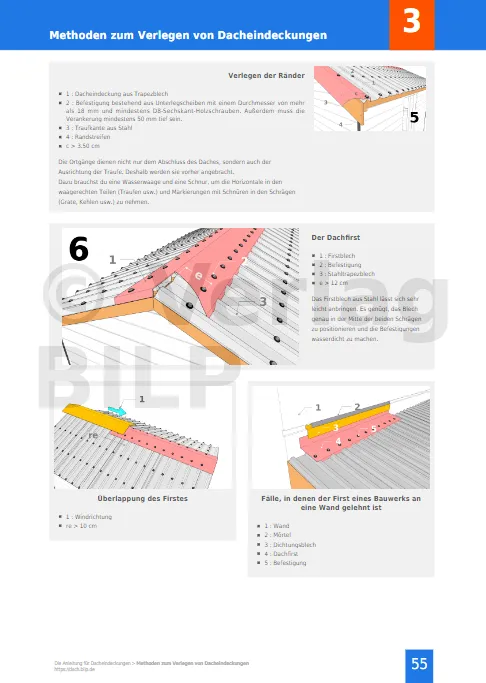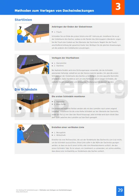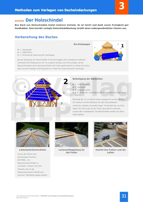 Konkrete Informationen für Ihr Projekt. Alle Geheimnisse, alle Tipps und Tricks für eine erfolgreiche Verlegung Ihrer Dacheindeckungen. Alle Techniken, alle Arten von Dacheindeckungen werden objektiv und unabhängig beschrieben. Detaillierte Ansichten beschreiben alle Schritte des Verlegens.