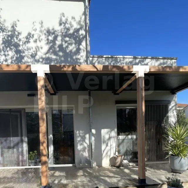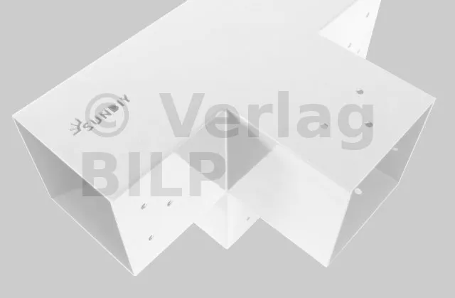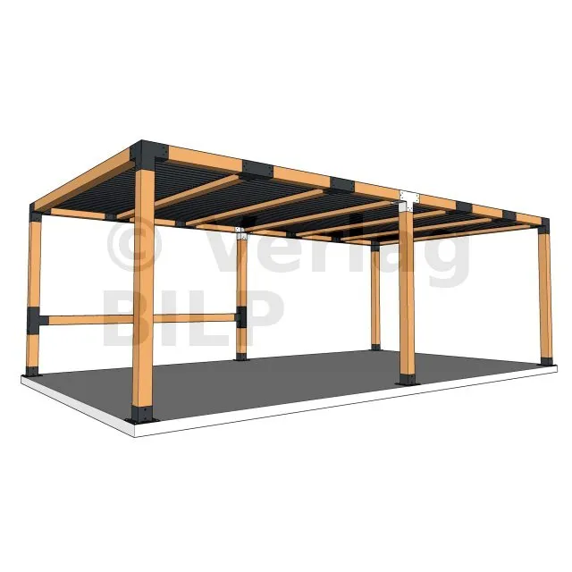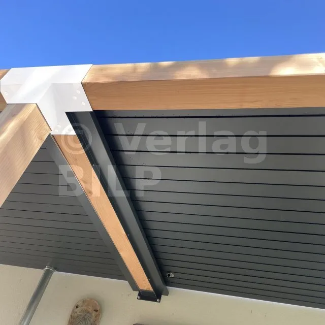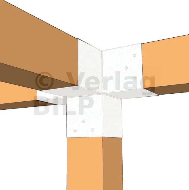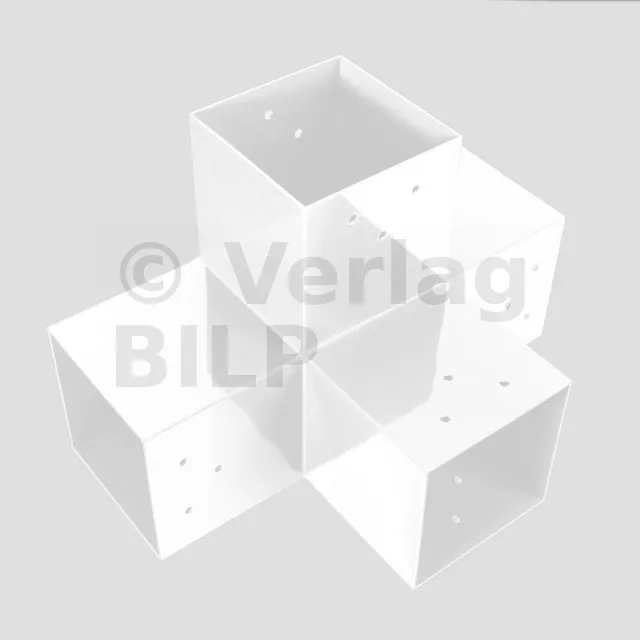 Damit kann eine 120x120mm-Stütze senkrecht zu einem 120x120mm-Chevron angebracht werden, die insgesamt von einem 120x120mm-Vertikaltopf unterstützt wird.