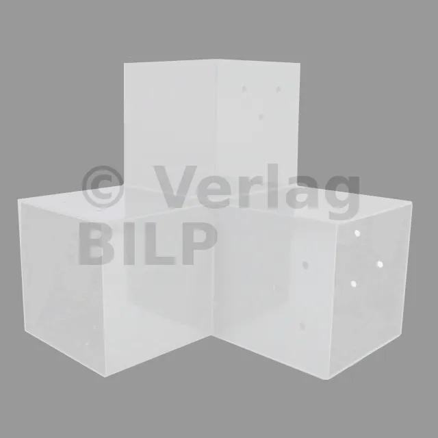 Es wird in einem Außenwinkel verwendet. Dieser Anschluss ermöglicht die Aufnahme einer großen 120x120mm-Steckdose, die senkrecht zu einer 120x120mm-Steckdose steht, die insgesamt von einem 120x120mm-Vertikaltopf unterstützt wird.