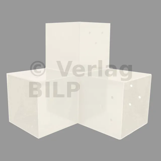 Es wird in einer Außenecke verwendet. Mit diesem Verbinder können Sie einen 90 x 90 mm großen Balken senkrecht mit einem anderen Balken oder mit einem 90 x 90 mm großen vertikalen Pfosten verbinden.