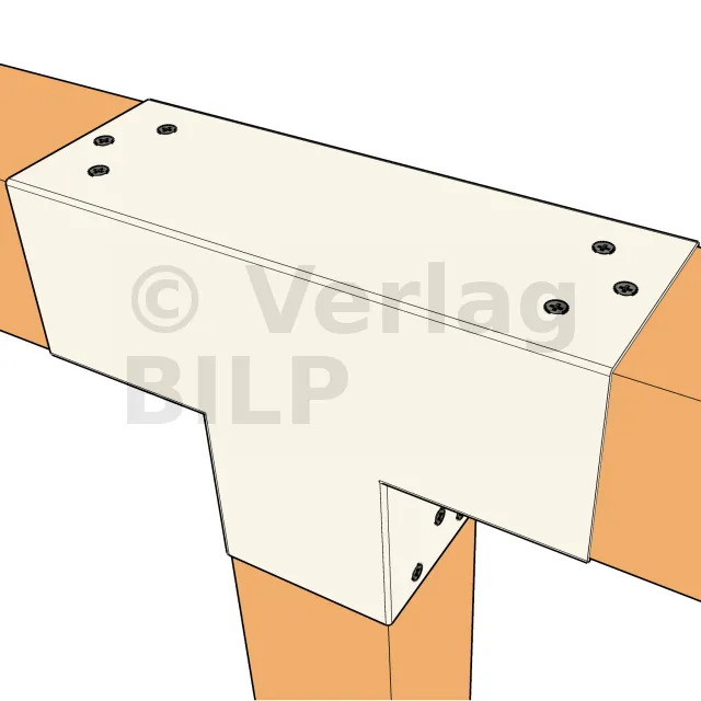 Es wird verwendet, um einen 90x90-mm-Träger senkrecht mit einem anderen 90x90-mm-Träger zu verbinden, OHNE dass er von einem vertikalen Pfosten getragen wird.