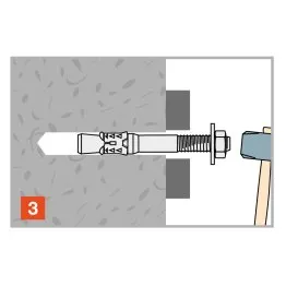 | Referenzen | Produktreferenz | Abmessungen [ØxL] [mm] | Bohr-Ø [d0] [mm] | Prof. min. Bohrtiefe [h1] [mm] | Ø Bohrung im zu befestigenden Teil (durchgehend) [df] [mm] | Schlüsselweite an der Fläche [SW] [mm] | Anziehen Drehmoment [Tinst] [Nm] | Prof. Verankerung [hef] [mm] | Ep. Mindestauflage [hmin] [mm] |