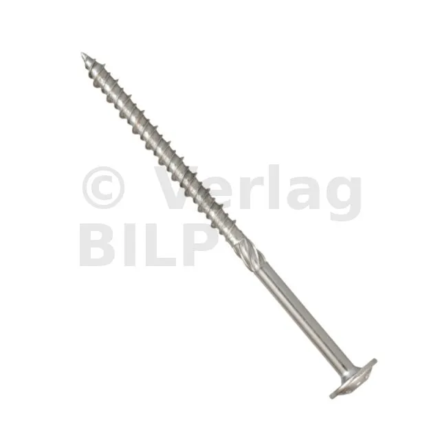 Falsche Scheibenkopfschrauben aus Edelstahl A2 werden für Massivholzkonstruktionen und zur Befestigung von Solaranlagen auf Dächern verwendet.