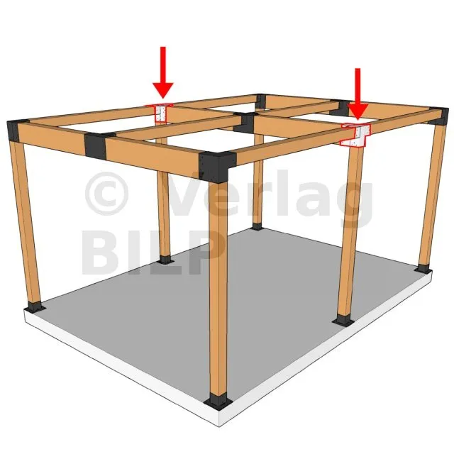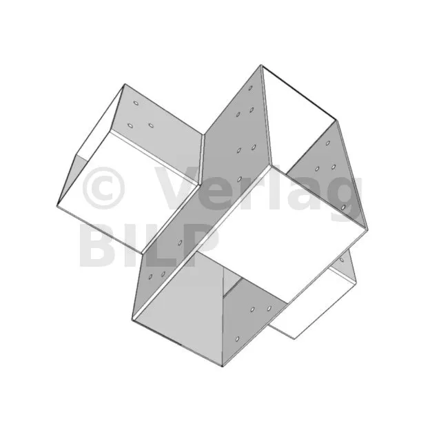 Es ermöglicht die senkrechte Verbindung von zwei 120 x 120 mm großen Balken zu einem großen 240 x 120 mm großen Balken, wobei das Ganze von einem 120 x 120 mm großen vertikalen Pfosten getragen wird.