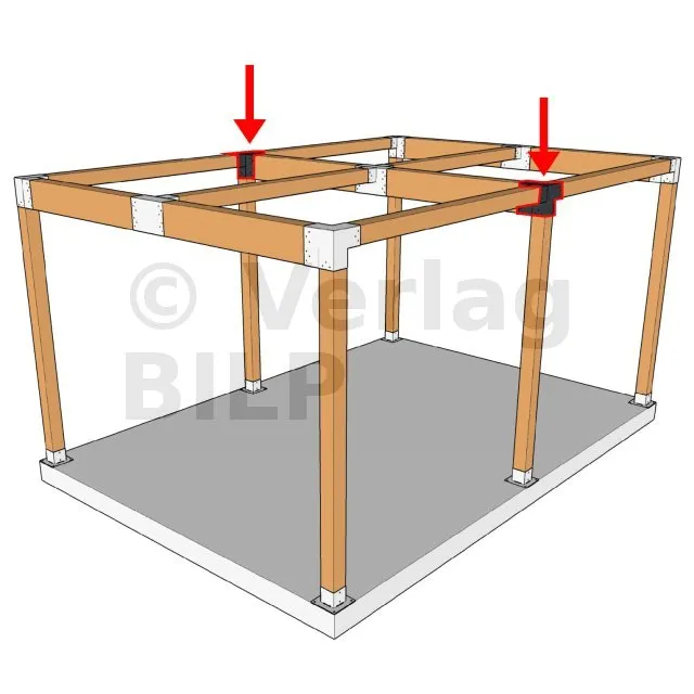 Es ermöglicht die senkrechte Verbindung von zwei 120 x 120 mm großen Balken zu einem großen 240 x 120 mm großen Balken, wobei das Ganze von einem 120 x 120 mm großen vertikalen Pfosten getragen wird.
