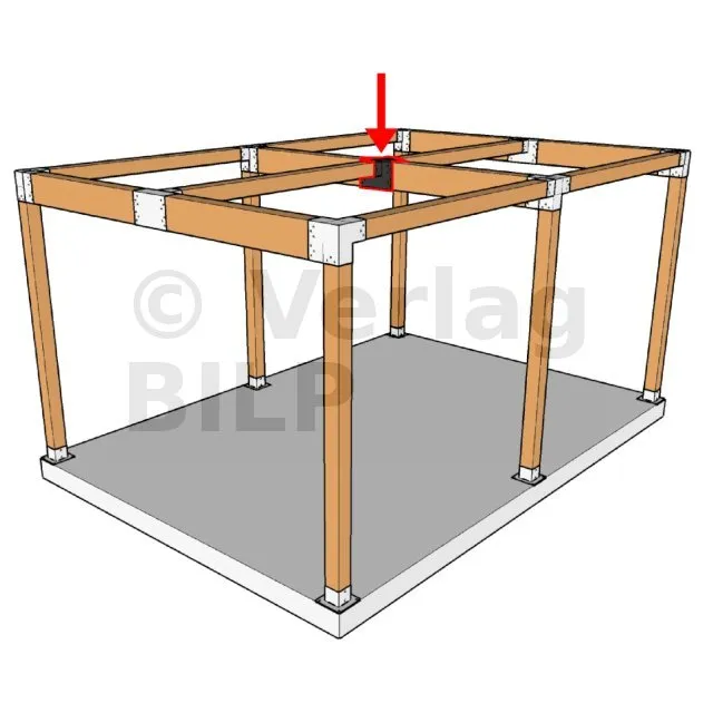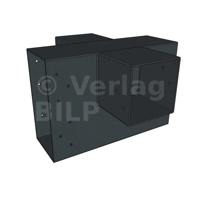 Es ermöglicht die senkrechte Verbindung von zwei 120 x 120 mm großen Balken zu einem großen 240 x 120 mm großen Balken, OHNE dass sie von einem vertikalen Pfosten getragen werden.