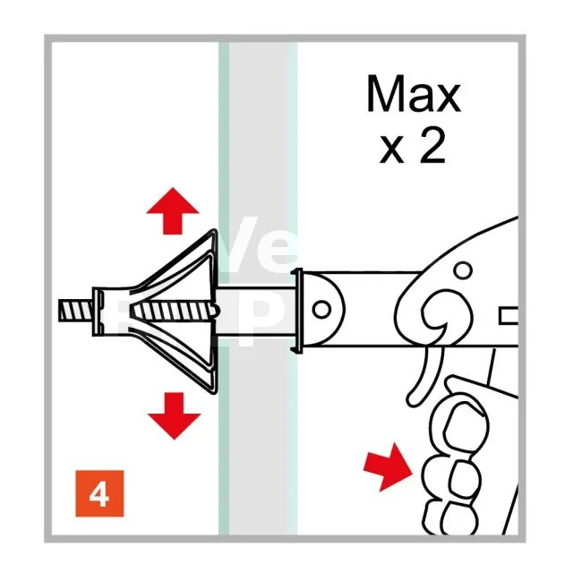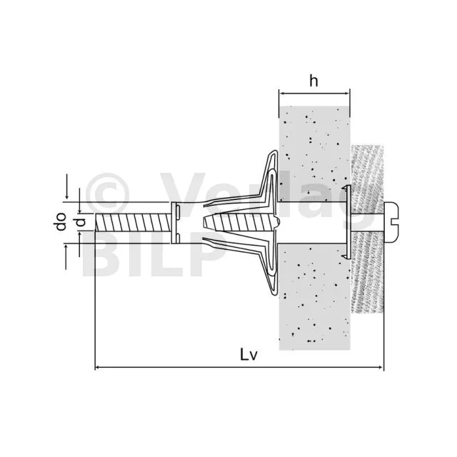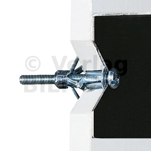 Der TMC-Spreizmetalldübel mit vormontierter Schraube mit metrischer Steigung ermöglicht die Befestigung von Elementen auf Gipskarton- oder Trockenbauwänden oder jedem Hohlraum, dessen Hohlraum den Abmessungen des Dübels entspricht.