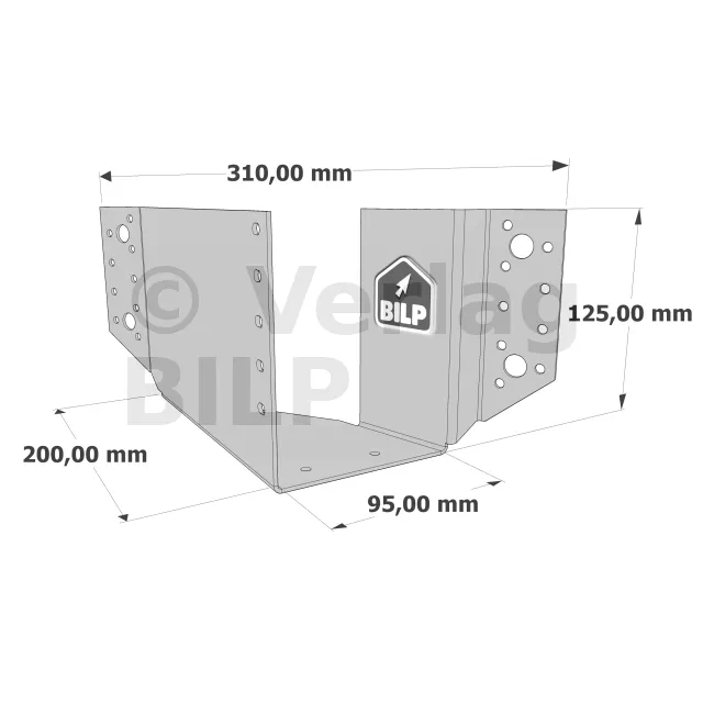 3. Passen Sie den Balkenschuh an die Markierungen an : Der Balkenschuh sollte oben etwas weiter geöffnet sein als unten, um die Montage des Nebenträgers zu erleichtern,