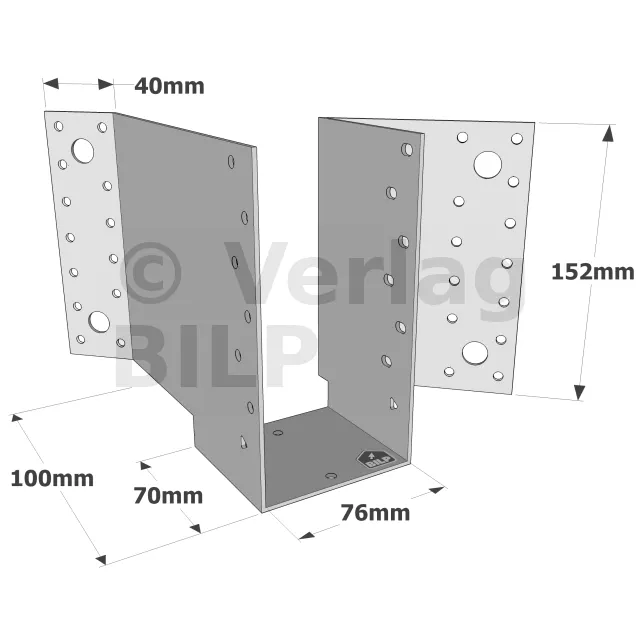 Diese Holzbalkenschuhe wurden entwickelt, um den vielen Fällen gerecht zu werden, die im Dachstuhl auftreten, wenn ein 45°-Winkel erforderlich ist. Sie werden in der Regel für horizontale Anwendungen verwendet, können aber auch für andere Zwecke angepasst werden.