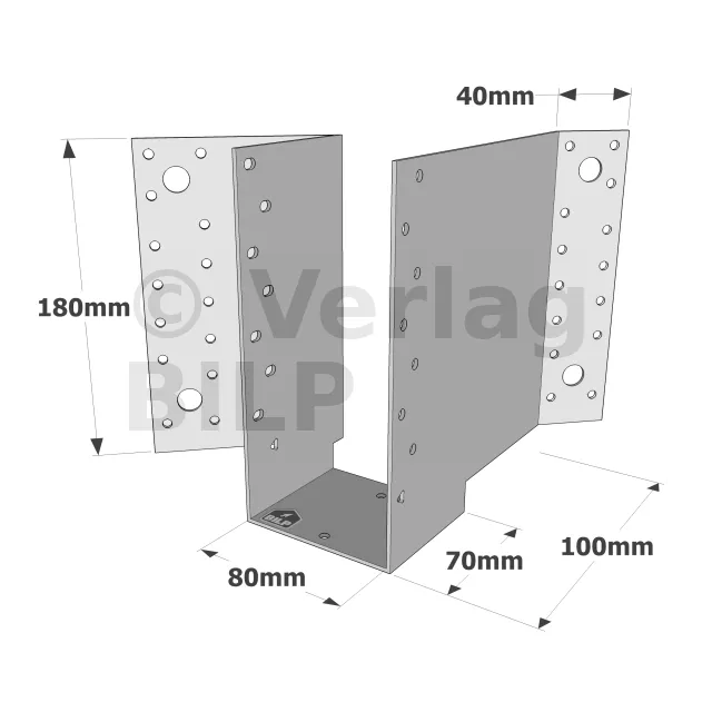 3. Passen Sie den Balkenschuh an die Markierungen an : Der Balkenschuh sollte oben etwas weiter geöffnet sein als unten, um die Montage des Nebenträgers zu erleichtern,