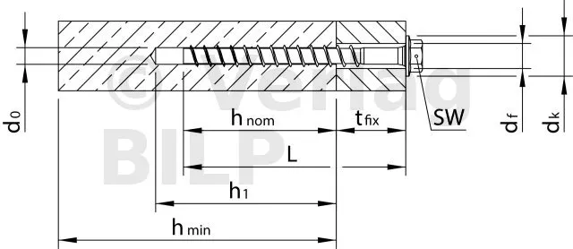 - Durchmesser der Durchgangsbohrung im zu befestigenden Element,df7mm