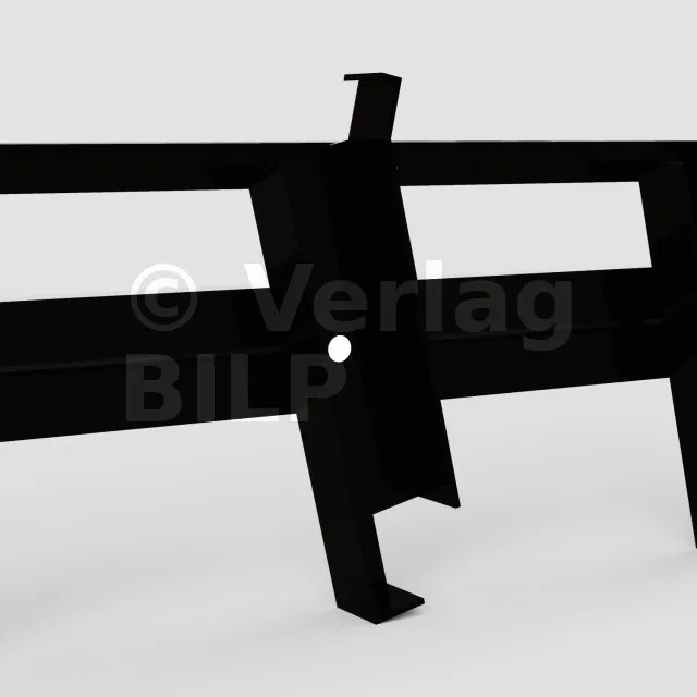 Abstand zwischen den Stützen: Unter der Annahme, dass der Mechanismus zwischen zwei Balken befestigt ist, muss der Abstand zwischen diesen beiden Balken gleich der Länge der Lamellen + 35 mm sein: 2 x 15 mm (Breite des Mechanismuskörpers) + 5 mm Spiel.