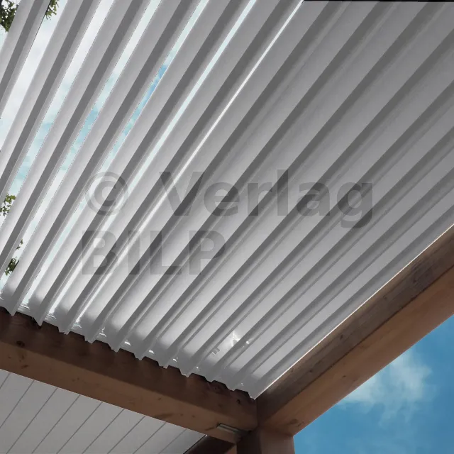 Dank ihres innovativen Designs sind diese Aluminiumlamellen die ideale Lösung für alle Ihre Anforderungen an die Abdichtung: Essen im Freien bei Regen, Schutz von Möbeln, Schutz einer Außenküche usw.