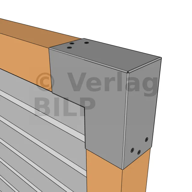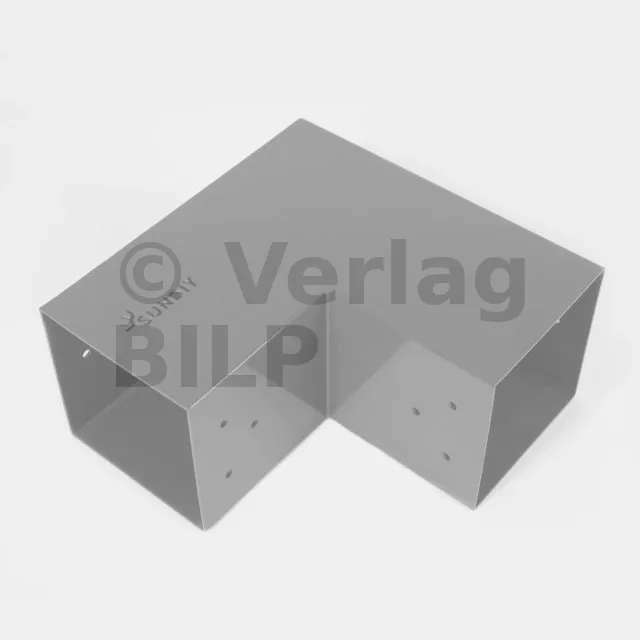Es wird in einer Außenecke verwendet. Mit diesem Verbinder können Sie einen 90 x 90 mm großen Balken senkrecht mit einem anderen Balken oder mit einem 90 x 90 mm großen vertikalen Pfosten verbinden.