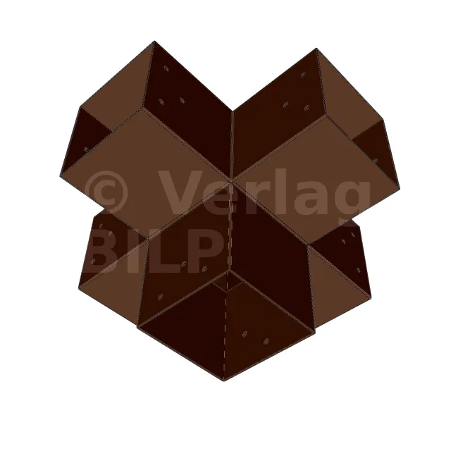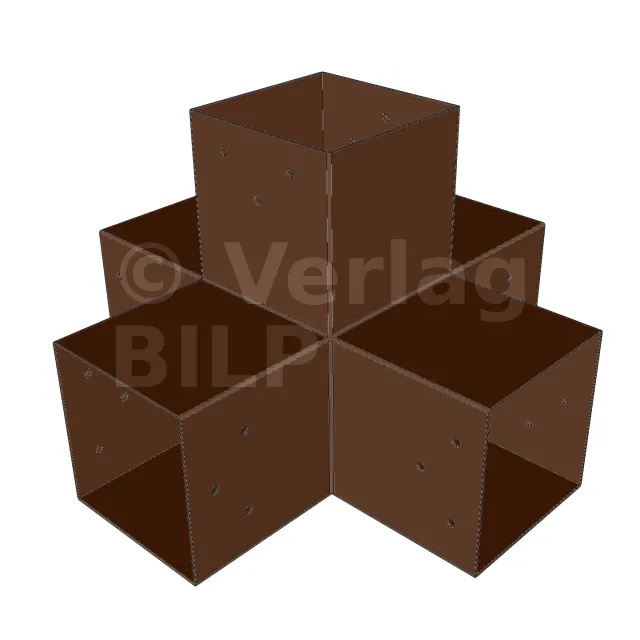 Es ist möglich, zwei 120 x 120 mm große Aussparungen senkrecht zu einer anderen 120 x 120 mm großen Aussparung aufzustellen, die insgesamt von einem 120 x 120 mm großen vertikalen Ausgießer unterstützt wird.