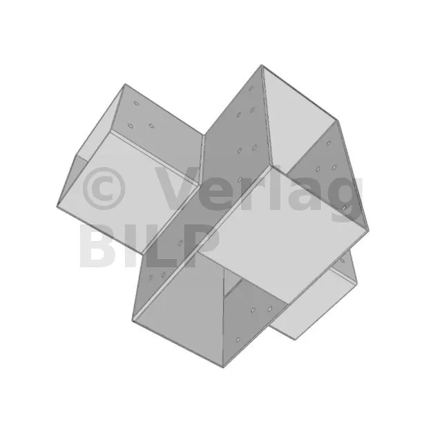 Es ermöglicht die senkrechte Verbindung von zwei 120 x 120 mm großen Balken zu einem großen 240 x 120 mm großen Balken, wobei das Ganze von einem 120 x 120 mm großen vertikalen Pfosten getragen wird.