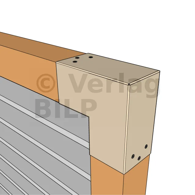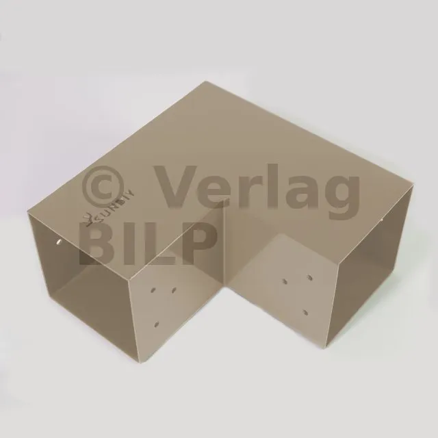 Es wird in einer Außenecke verwendet. Mit diesem Verbinder können Sie einen 90 x 90 mm großen Balken senkrecht mit einem anderen Balken oder mit einem 90 x 90 mm großen vertikalen Pfosten verbinden.