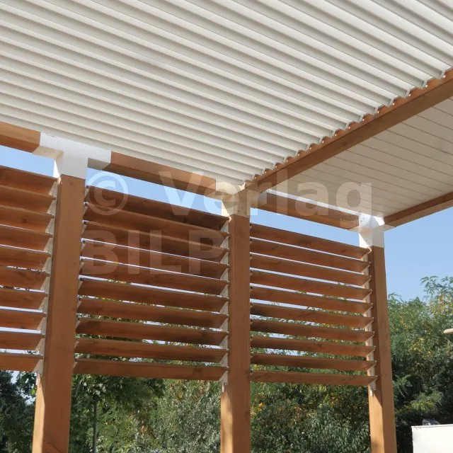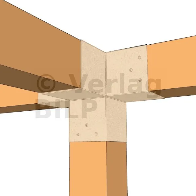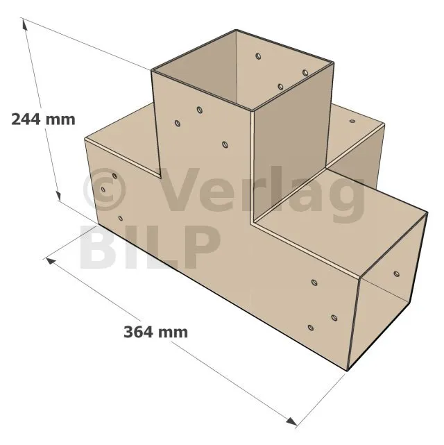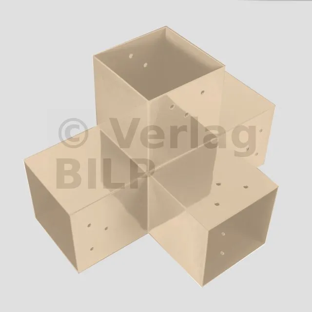 Damit kann eine 120x120mm-Stütze senkrecht zu einem 120x120mm-Chevron angebracht werden, die insgesamt von einem 120x120mm-Vertikaltopf unterstützt wird.