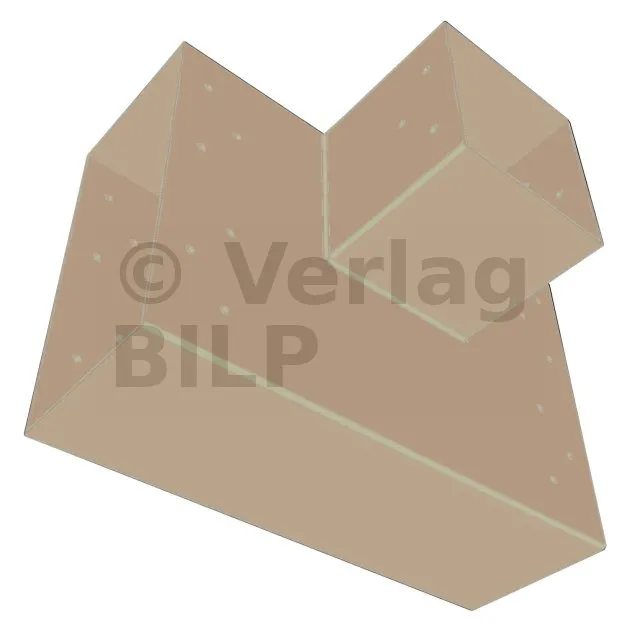 Es wird verwendet, um einen 120 x 120 mm großen Balken senkrecht mit einem großen 240 x 120 mm großen Balken zu verbinden, OHNE dass er von einem vertikalen Pfosten getragen wird.