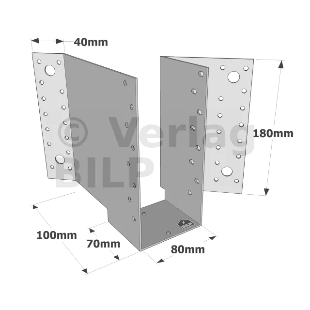 3. Passen Sie den Balkenschuh an die Markierungen an : Der Balkenschuh sollte oben etwas weiter geöffnet sein als unten, um die Montage des Nebenträgers zu erleichtern,