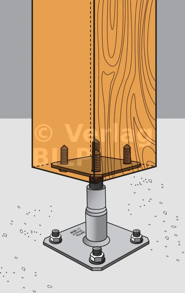 - Befestigung von Holzelementen (Sparren, Balken, Pfosten usw.) an Metallplatten.