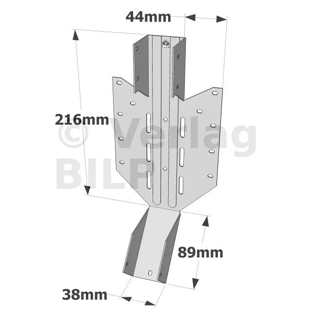 - Langlöcher, die bei Bedarf ein schräges Nageln ermöglichen.
