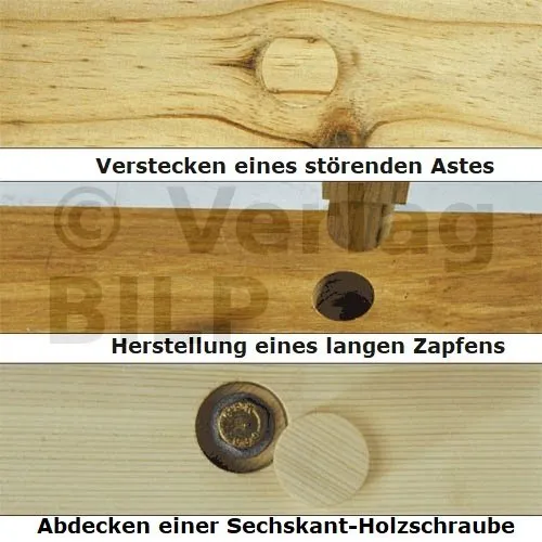 So erstellen Sie einfach Holzdübel mit 8/10/12/15 mm Durchmesser, um Ihre Schraubenköpfe zu verdecken.
