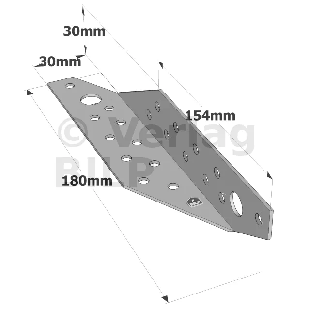 | Referenzen | Abmessungen [mm] | Bohrungen | Anzahl der Nägeln pro Verbinder | Charakteristische Beständigkeiten [kN] | ||||||||||