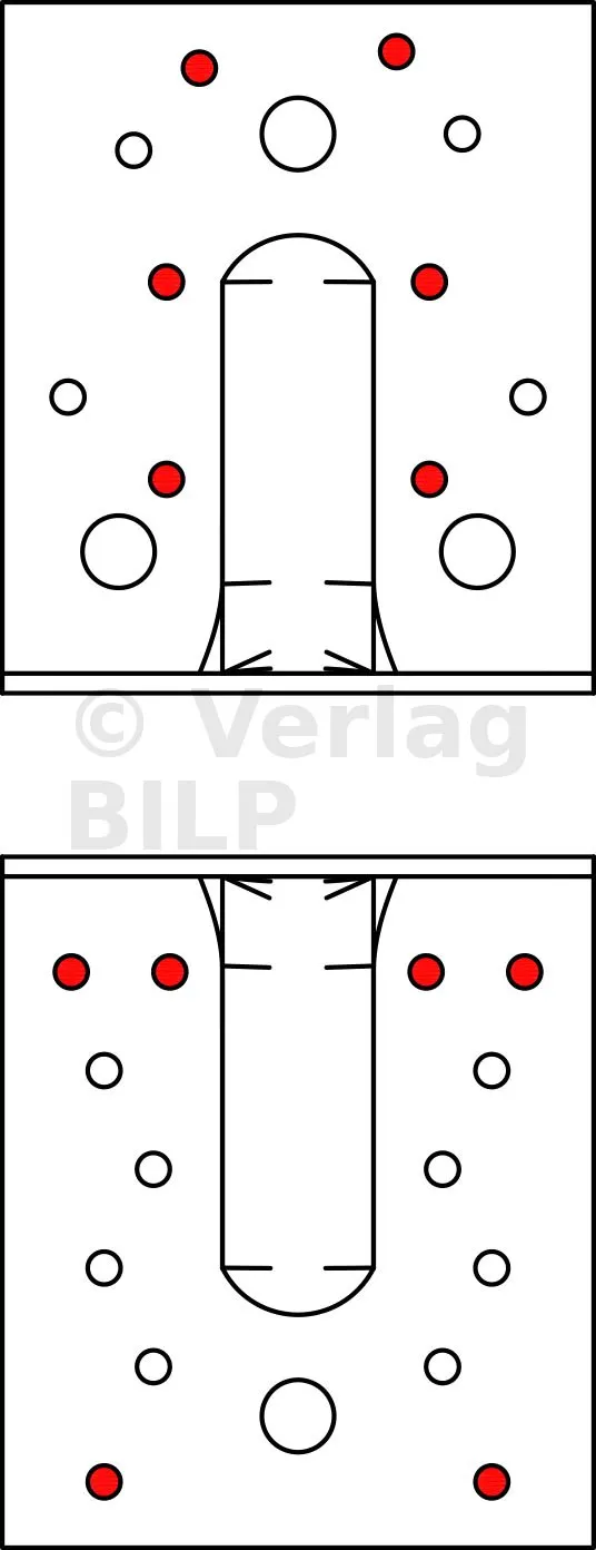 | Referenzen | Abmessungen [mm] | Bohrungen Flügel A | Bohrungen Flügel B | |||||
