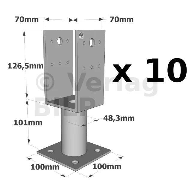 U-Pfostenträger mit Platte - Réf. PPUP70_10