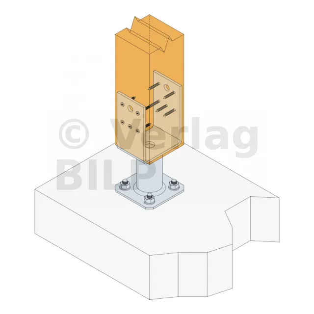 ** Beziehen Sie sich auf das Simpson Strong-Tie Verankerungssortiment, um die richtige Verankerung auszuwählen. Standardlösungen sind BOAXII, SET-XP, WA, AT-HP, die je nach Betonart, Achsabstand und Randabständen ausgewählt werden sollten.