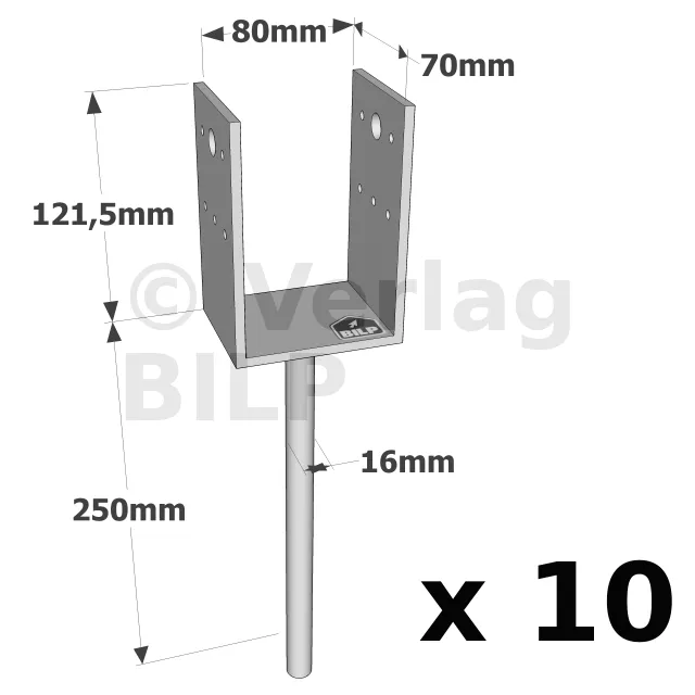 U-Pfostenträger zum Einbetonieren - Réf. PPD80/70G_10