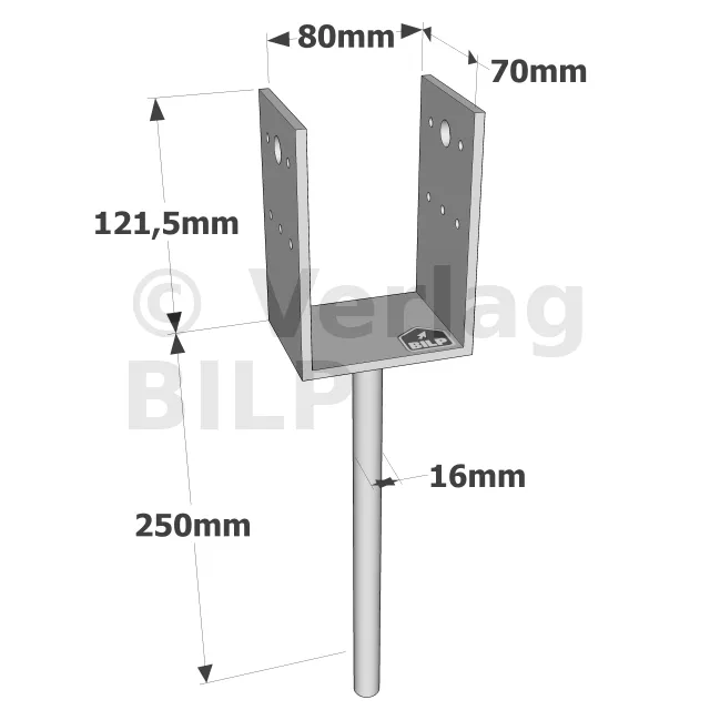 U-Pfostenträger zum Einbetonieren - Réf. PPD80/70G