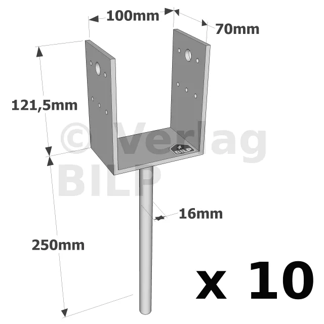 U-Pfostenträger zum Einbetonieren - Réf. PPD100/70G_10