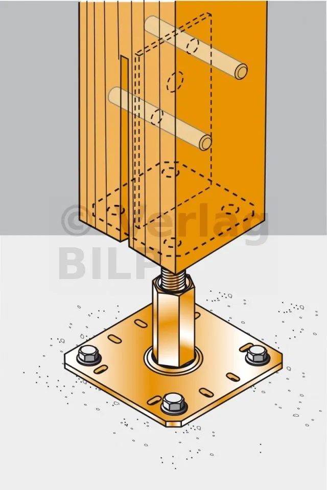4. Der Pfostenfuß kann beim Gießen auch in den Beton eingebettet werden.