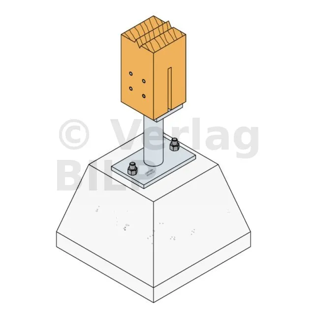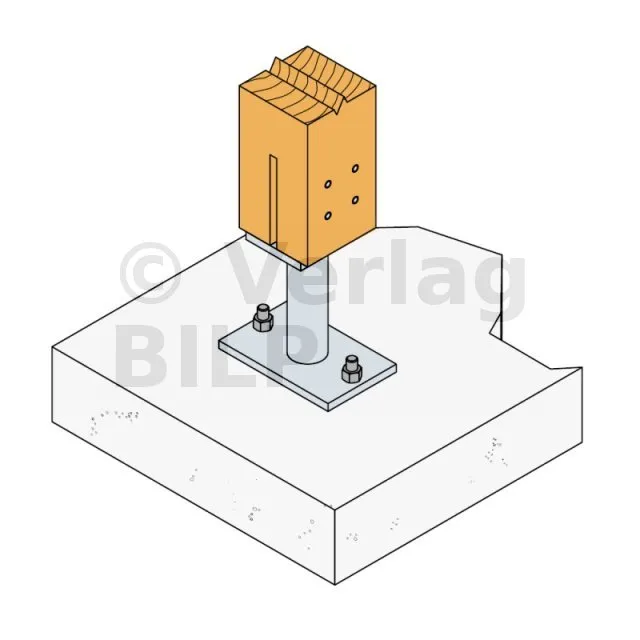 - Holzverbindung auf starrem TrägerAuf Pfosten : 4Ø8 (STD-Stabdübel) ; auf Beton : 2Ø12 (WA-Dübel ; Gewindestange)