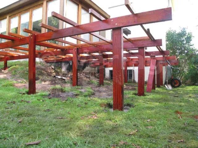 - Stützpfosten aus schichtverleimtem Holz,