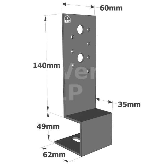 - Bietet einen geringen Abstand zwischen dem Betonuntergrund und dem Holzpfosten (50 mm),