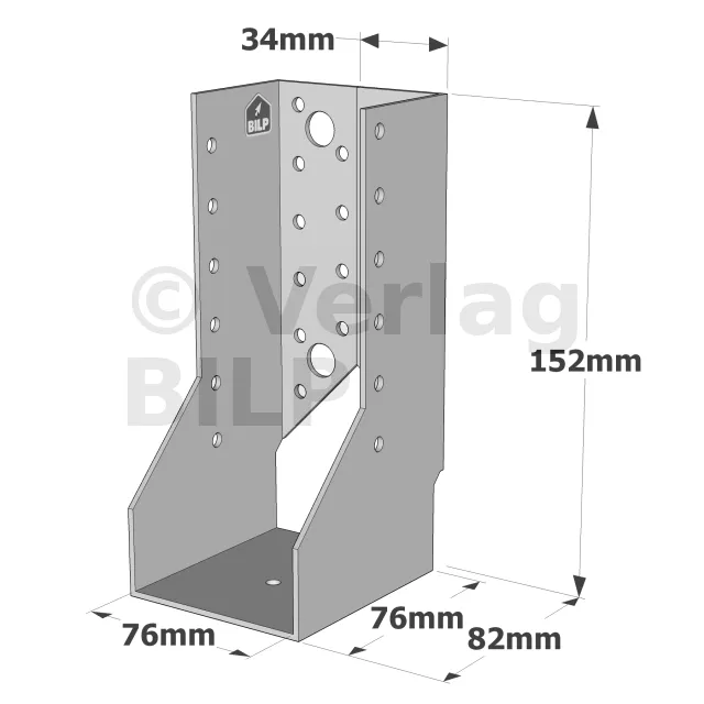Zwischen der Dicke des Holzes und der Breite des Balkenschuhs ist eine Toleranz von maximal 2 mm zulässig. Beispiel : Ein auf 76 mm gebogener Balkenschuh kann eine Holzstärke von 74 mm tragen.