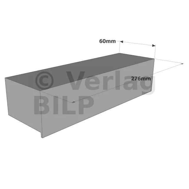 - BreiteDeckt max. 240 mm der Wand ab. Bitte beachten Sie, dass das Endstück innerhalb der Abdeckung der Serie 280 montiert ist. Die Außenbreite beträgt somit 276 mm.