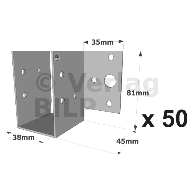 Balkenschuhe mit außenliegenden Schenkeln, MF-Sortiment, für MF-Mini-Pfettenanker - Réf. MF200/38/1.5_50
