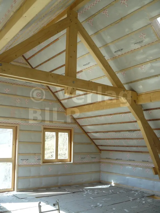 Für Luft- und Wasserdampfdichtheit in allen Arten von isolierten Konstruktionen (isolierte Steildächer, Holzrahmenkonstruktionen usw.), verlegt auf einem kontinuierlichen oder diskontinuierlichen Untergrund auf der Innenseite.