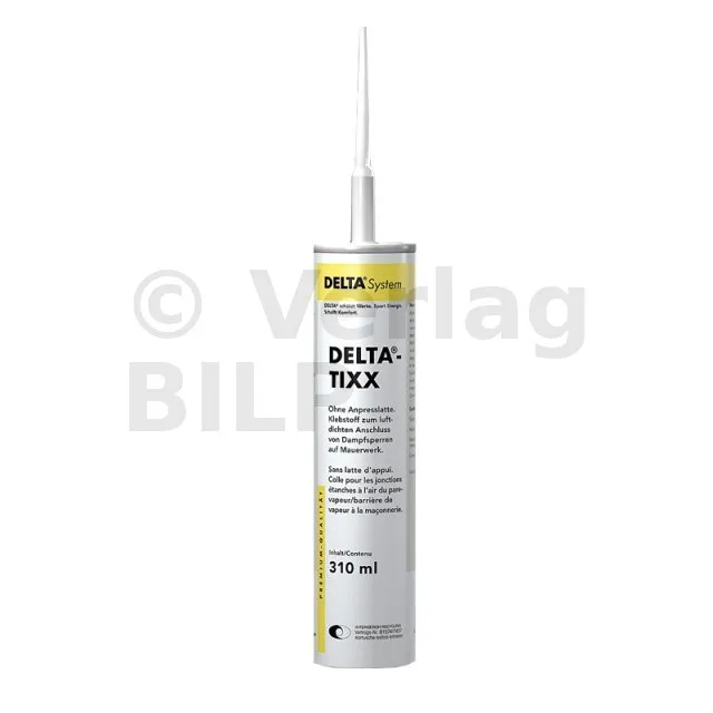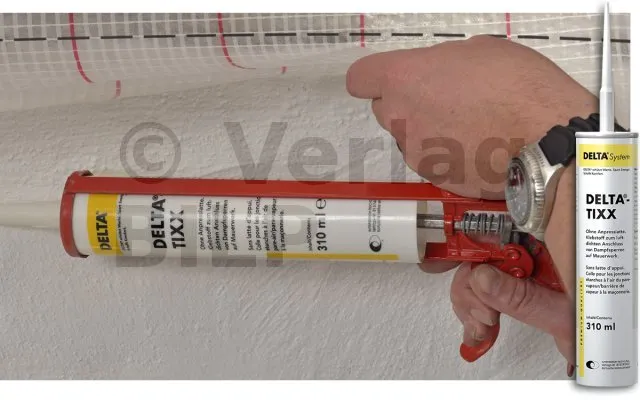 Dauerhaft elastischer Kartuschenkleber zur luftdichten Verklebung von DELTA® Dampfsperren an den seitlichen Stößen.