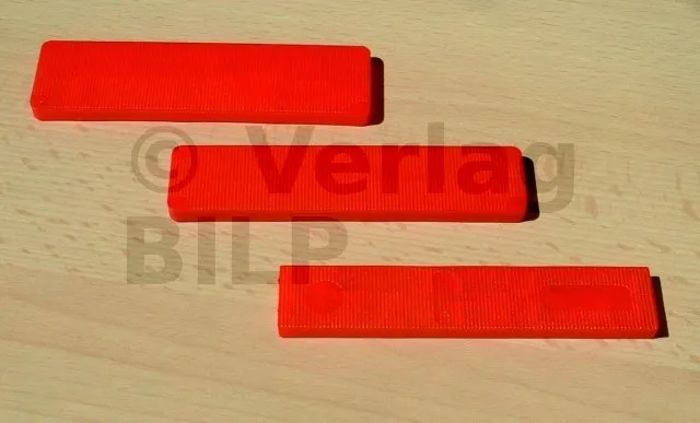 Kunststoff-Flachkeile, die für die Installation in allen Gewerken der Ausbauarbeiten, Verglasungen, Beschläge usw. unerlässlich sind.