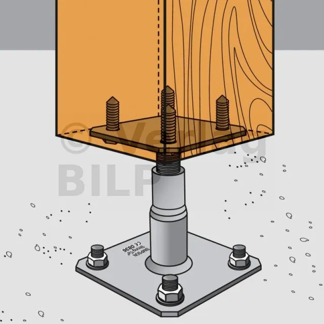Dieser Pfostenträger ist in der Höhe verstellbar. Er ist einfach und schnell zu montieren und kann auf der Baustelle verstellt werden.