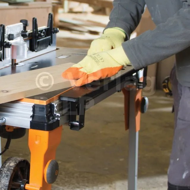- Seitliche Werkstückstütze zur Bearbeitung längerer Werkstücke.